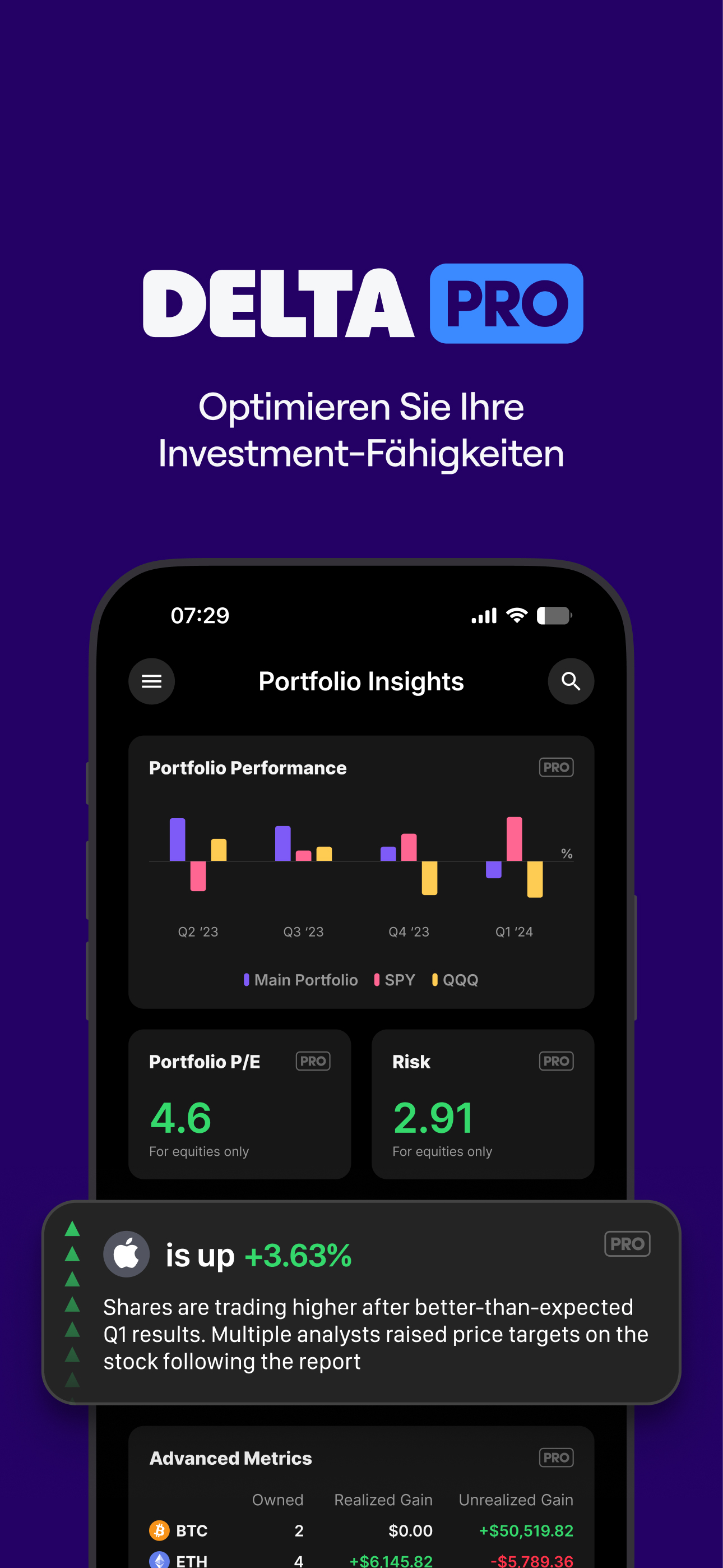 Schließen Sie sich Millionen von Investoren an, die Delta nutzen, um ihre Portfolios zu verfolgen, Trends zu analysieren und datengestützte Entscheidungen zu treffen.