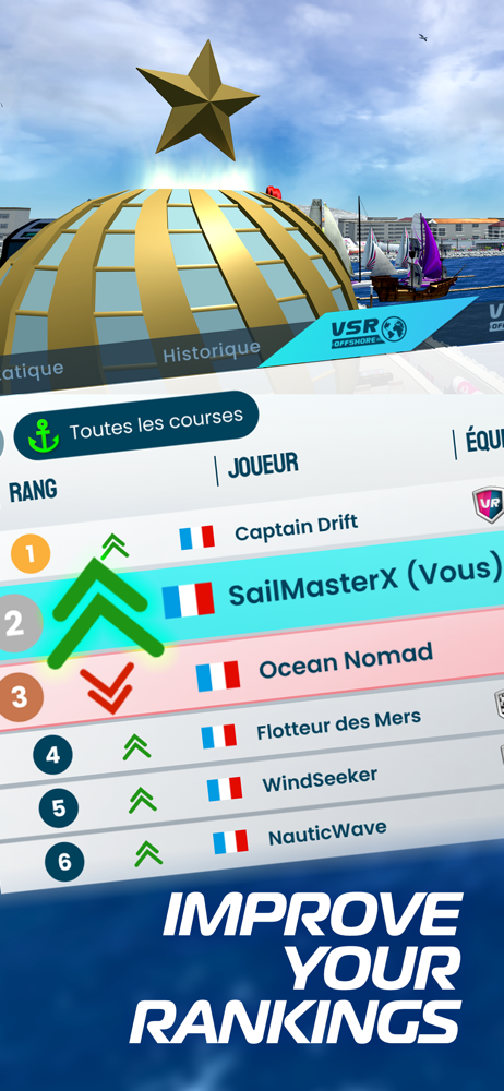 Virtual Regatta is an official partner of the FFVoile, the World Sailing Federation (World Sailing) and the Olympic Games with whom Virtual Regatta co-organizes all existing official eSailing events. Sail with the best !