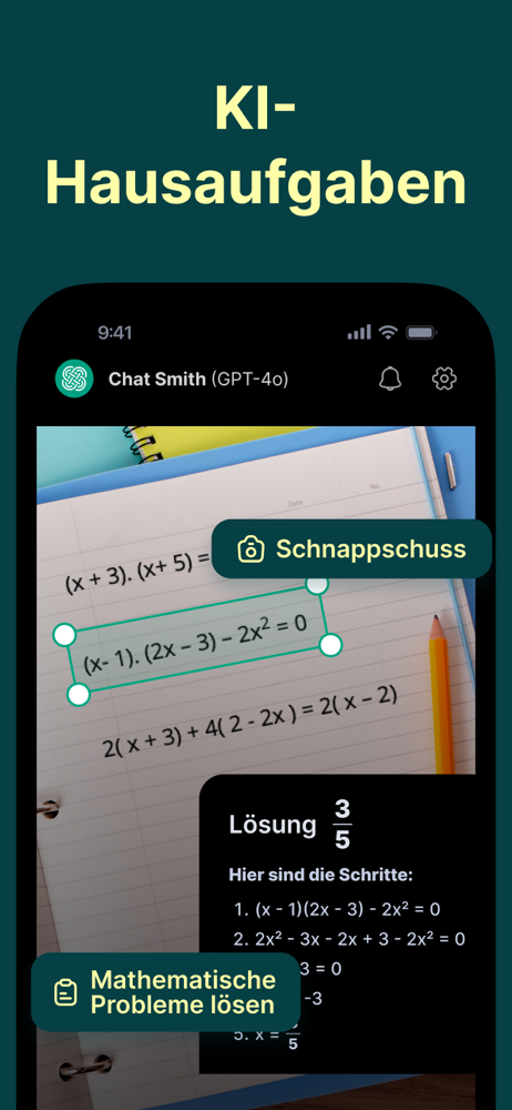 Chat Smith, entwickelt mit GPT-5, GPT-4o, GPT-4, DeepSeek-R1, Grok-4 und Gemini 2.5, bietet leistungsstarke KI-Chatfunktionen wie tiefgehende Recherche, Sprachinteraktion, E-Mail-Erstellung, Mathematiklösungen, Bildgenerierung und intelligente Gespräche.