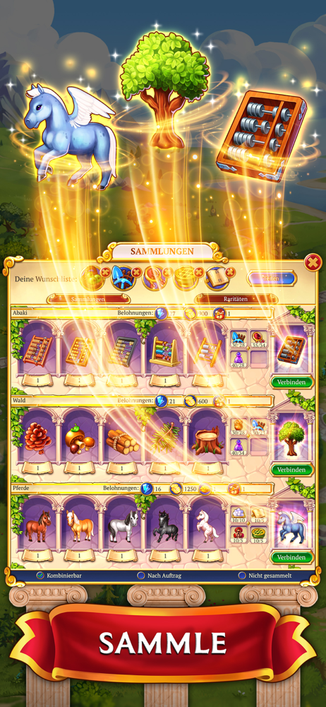 Etwas verwirrend finde ich die einzelnen Spielelemente. Sehr viel verschiedene Dinge auf einmal mit dem Sammeln, Ausbauen, Kombinieren und Aufsteigen. Man weiß nicht ob es Sinn macht die Quests in einer bestimmten Reihenfolge zu machen. Soll man Dinge, die man kombiniert hat, nochmal kombinieren? Was bringen komplette Sammlungen und Raritäten? Dass die glitzernden Statuen auch Booster sind, ist nicht offensichtlich. Die Liste der Sammlungen könnte einen Anzeigefilter vertragen, da sehr länglich. Aber alles in allem ein schönes Spiel, das man allerdings ohne Käufe nur eine begrenzte Zeit pro Tag spielen kann, da sich die notwendige Energie nur langsam regeneriert.