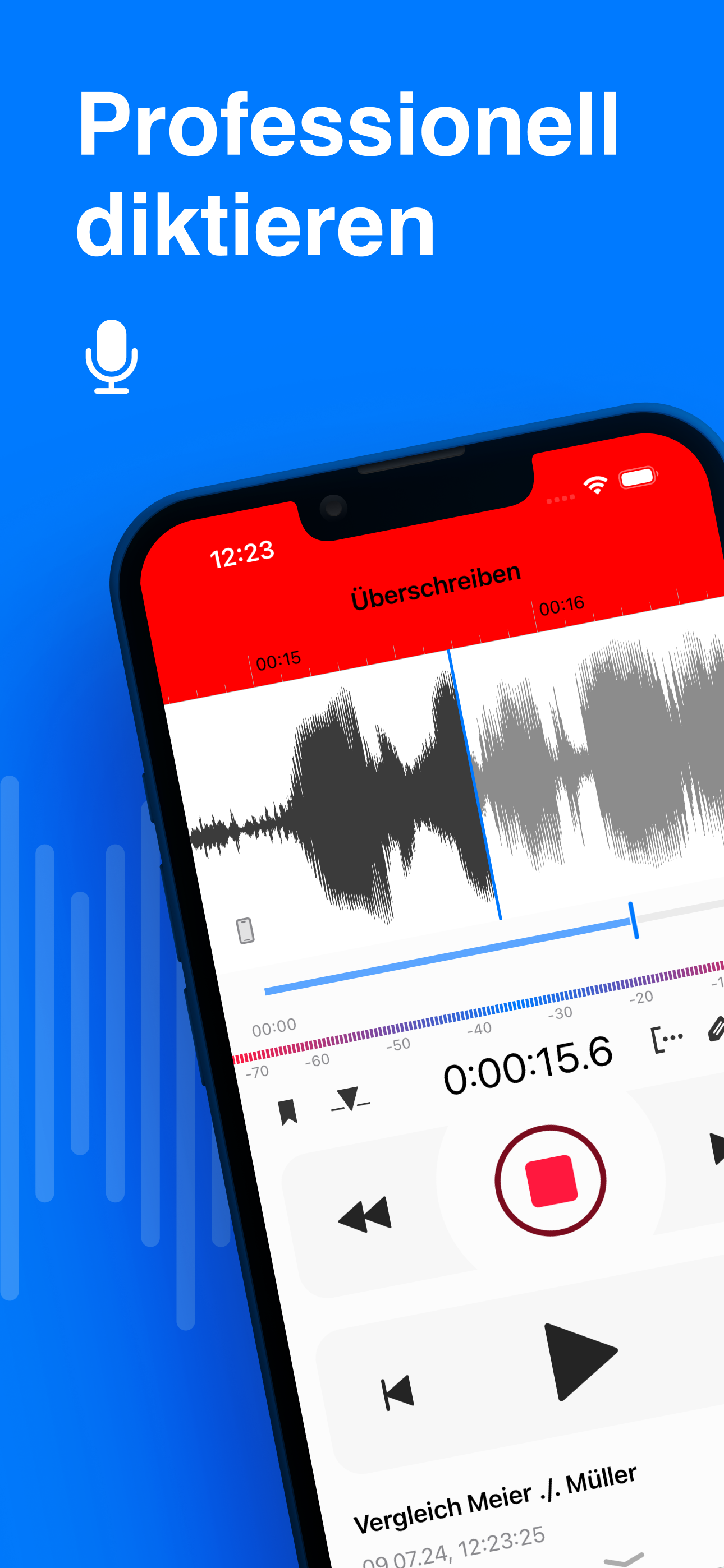 Dictate⁺ macht aus Ihrem iPhone oder iPad ein professionelles Diktiergerät, das mehr kann als die meisten High-End-Diktiergeräte. Dictate⁺ ist eine unverzichtbare App für Ärzte, Rechtsanwälte, Steuerberater, Gutachter, Journalisten und alle, die Sprache aufzeichnen und nach höchsten Sicherheitsstandards weiterleiten möchten.