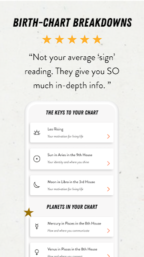 - “this app is an incredibly convenient way to get hyper-personalized insights such as transits, guided meditations and year-ahead reports “ - Today Show