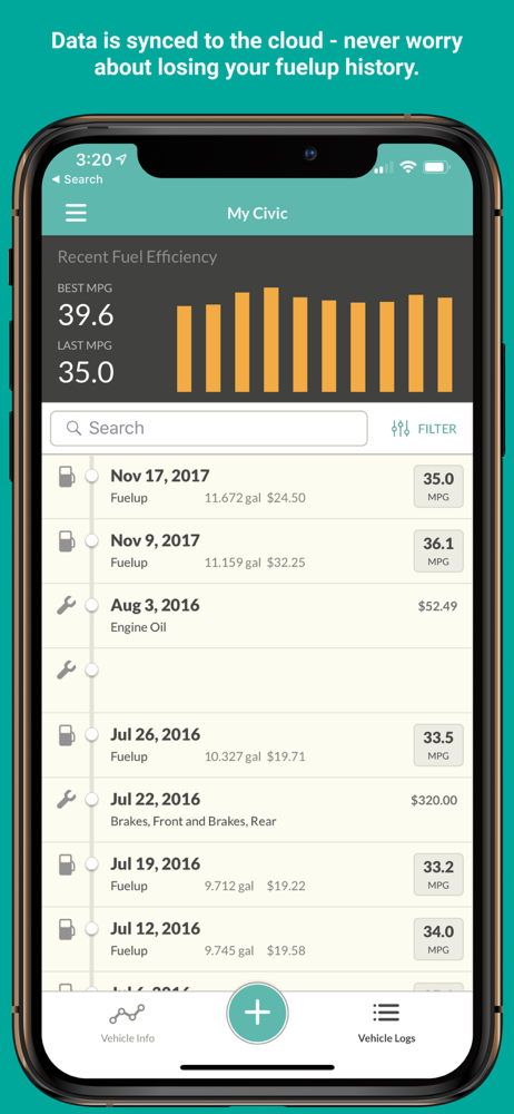 social_and_communityfeature_requestsmonetizationBack in the olden days, I watched my dad write down the mileage and gallons at each fill-up. I never could get in the habit of using a paper notebook, but keeping it in my phone is great. I’m two years into using Fuelly and I can’t imagine not having it. It’s more than just fuel and mileage info, it’s also a record of maintenance. I love that I can take a pic of my receipt at the pump, or the itemized invoice at the mechanic, and log exactly what was done. Then a few months later I can look at my notes when the shop tells me it is time to replace my spark plugs and I can say no thanks I had that done less than 10K miles ago. If I could change anything it would be the export function. All the images are lost, which stinks if you ever want to sell your vehicle and include the service record. Also, the tire size and recommended pressure aren’t viewable on the car info page. If you hit edit you can see the fields and edit them, but otherwise they’re invisible. Devs, if you’re reading, consider updating. Both are minor issues and don’t outweigh the overall usefulness of this app, especially for the very reasonable annual fee. If you’re looking for a place to store your vehicle data consider Fuelly.