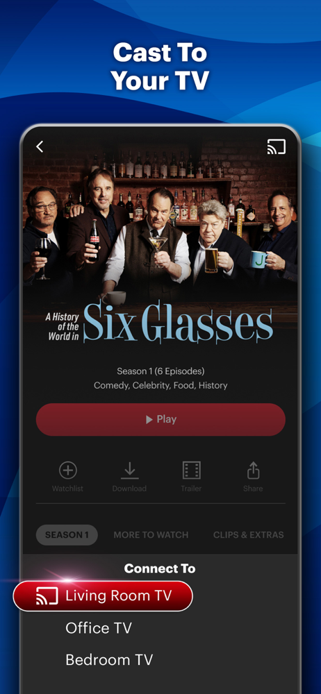 Stream using your smartphone, tablet, or connected TV. Start watching from one device and finish watching on another without interruption.