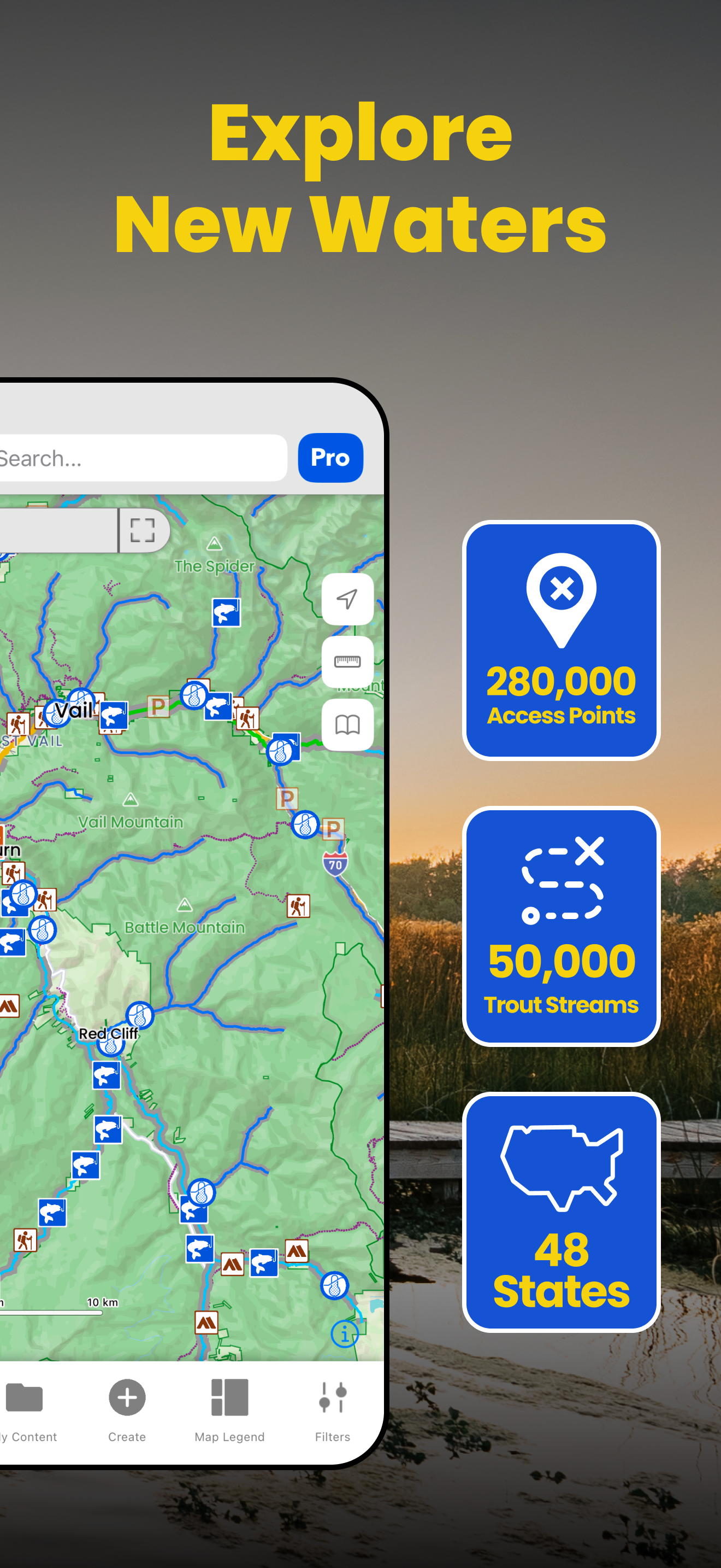 Find local fishing spots, explore new waters, and navigate public access like a pro. View maps of over 50,000 trout streams, get GPS directions, and save detailed maps with your own markups for offline use. Check real-time conditions with live data from stream gages.