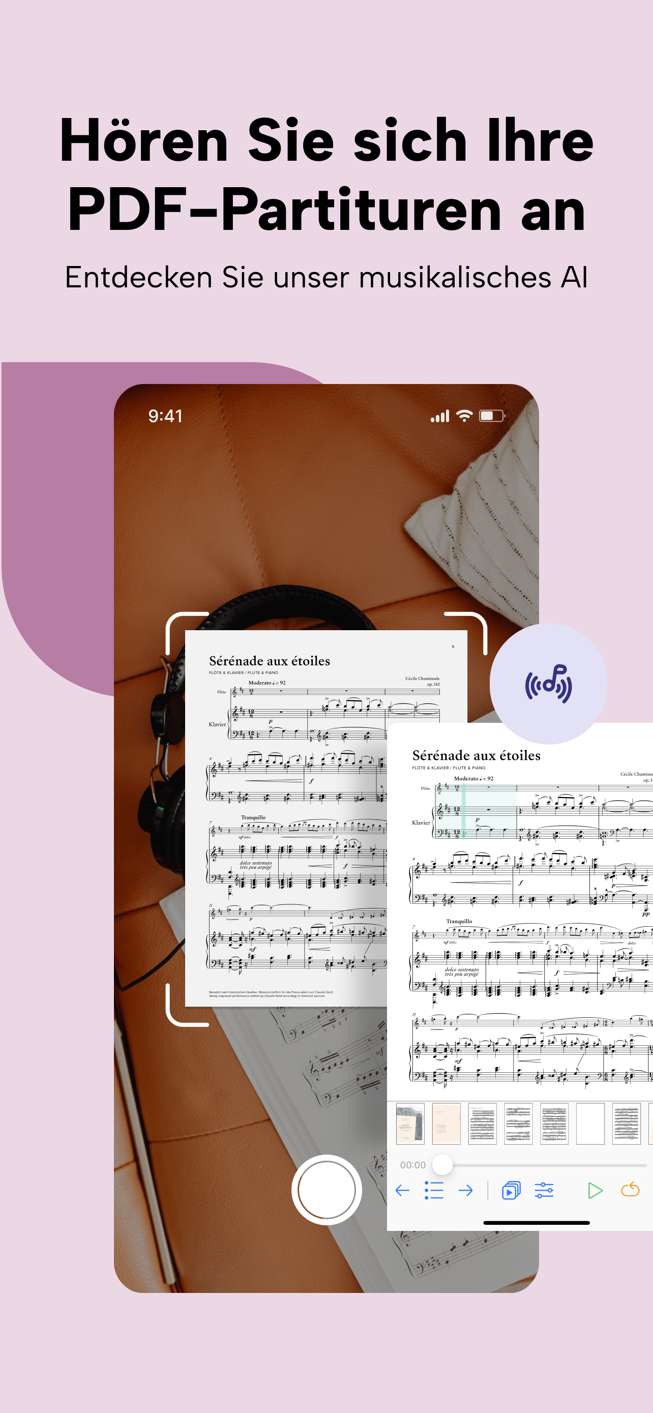 Werden Sie papierlos und entdecken Sie die Möglichkeiten digitaler Notenblätter mit unserem PDF-Reader. Hören Sie sich Ihre Partituren dank unserer KI an, arbeiten Sie sofort mit Ihrer Band zusammen und profitieren Sie von allen Tools, die Sie brauchen, in nur einer App.