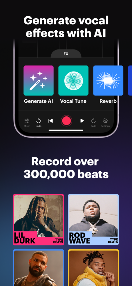 Pick from rap, trap, drill, Afrobeats, and more. Browse playlists or create beat playlists to fuel your freestyle, record new songs, or collaborate with other rapstars.
