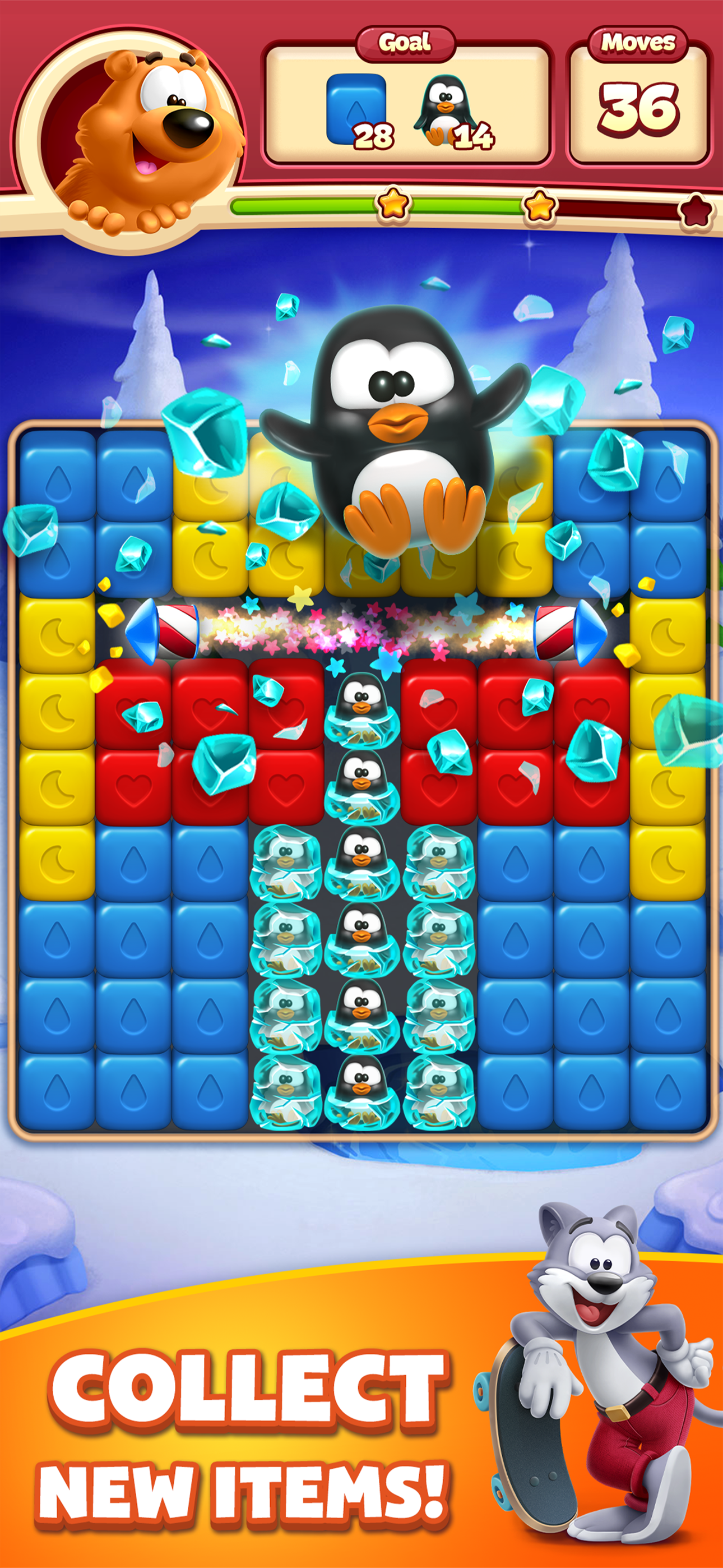 Welcome to “Toon Blast,” a free match-3 adventure that combines fun and strategy. Join Bruno Bear, Cooper Cat, and Wally Wolf in blasting cubes and solving puzzles without Wi-Fi. This calming game is packed with addictive mini-games and challenges. Each level is a unique puzzle experience, offering a blend of fun and strategic gameplay. Immerse yourself in this captivating world, enjoy relaxing puzzle-solving, and embark on an unforgettable adventure. “Toon Blast” is more than a game; it’s a journey of joy and relaxation, free for all to enjoy.