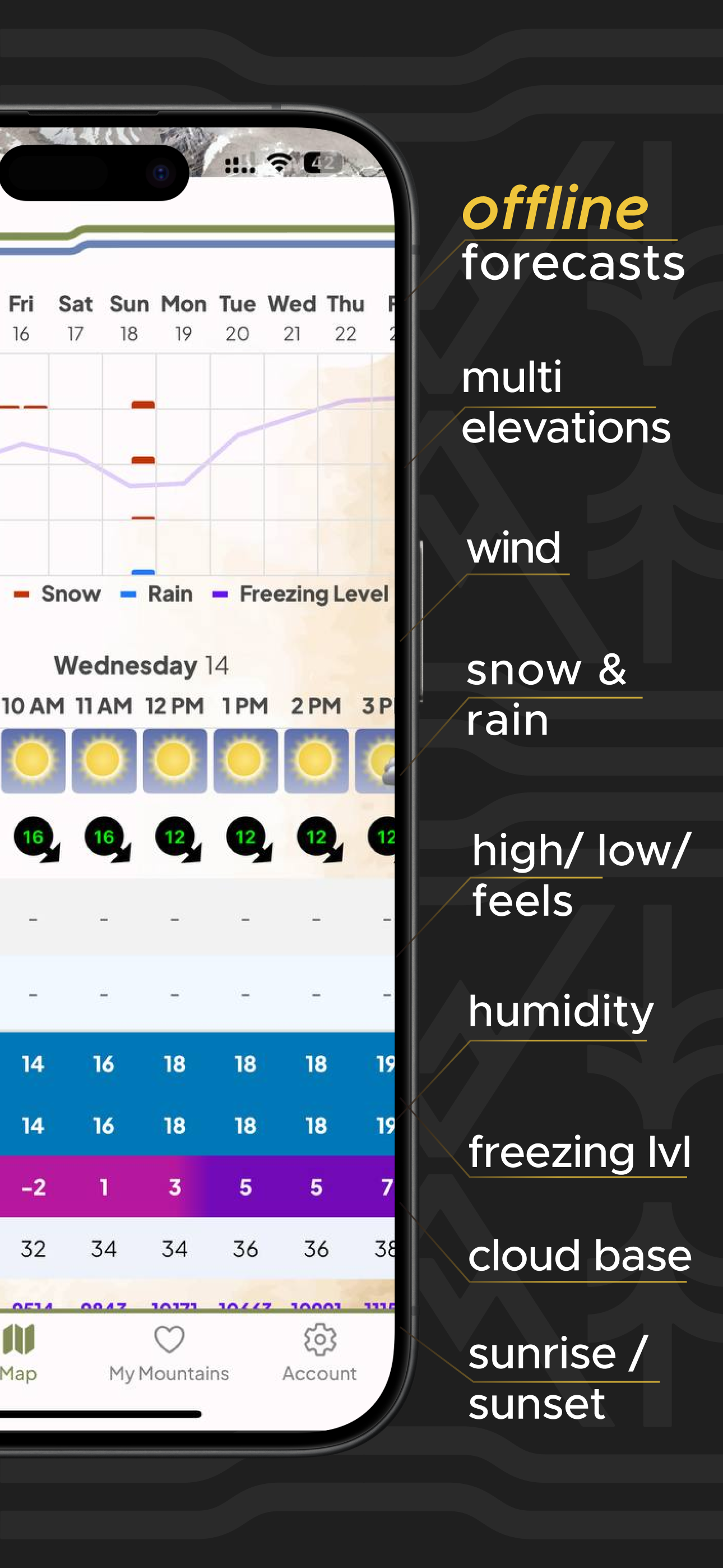“A must-have app for anyone who spends time in the mountains. The forecasts for different elevations are critical for both planning and when I’m out climbing. The best mountain weather app out there!” Leigh Strong (USA)