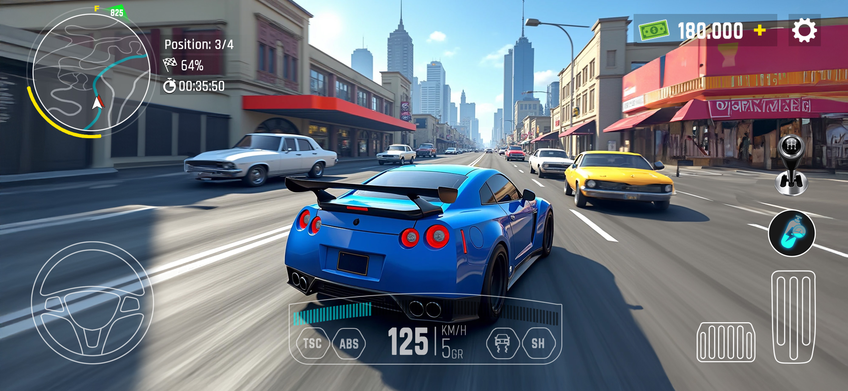 - REALISTIC DRIVING EXPERIENCE: Feel the excitement of realistic race car dynamics as you navigate city car races and drive streets on the mini maps, with each vehicle offering its own distinct handling characteristics in this game.