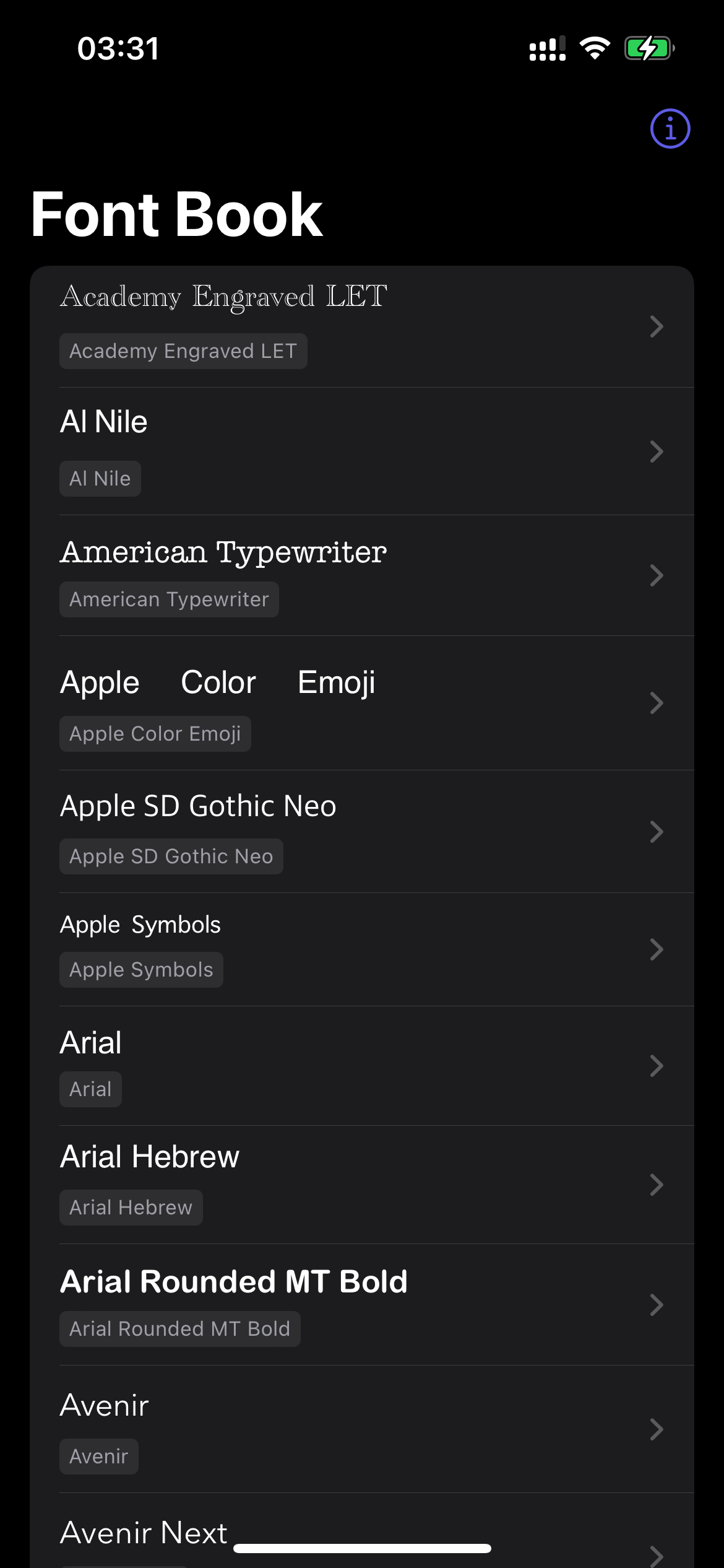 Using Font Book, you can easily discover and preview all the built-in fonts on device. Designers can easily find the right font.