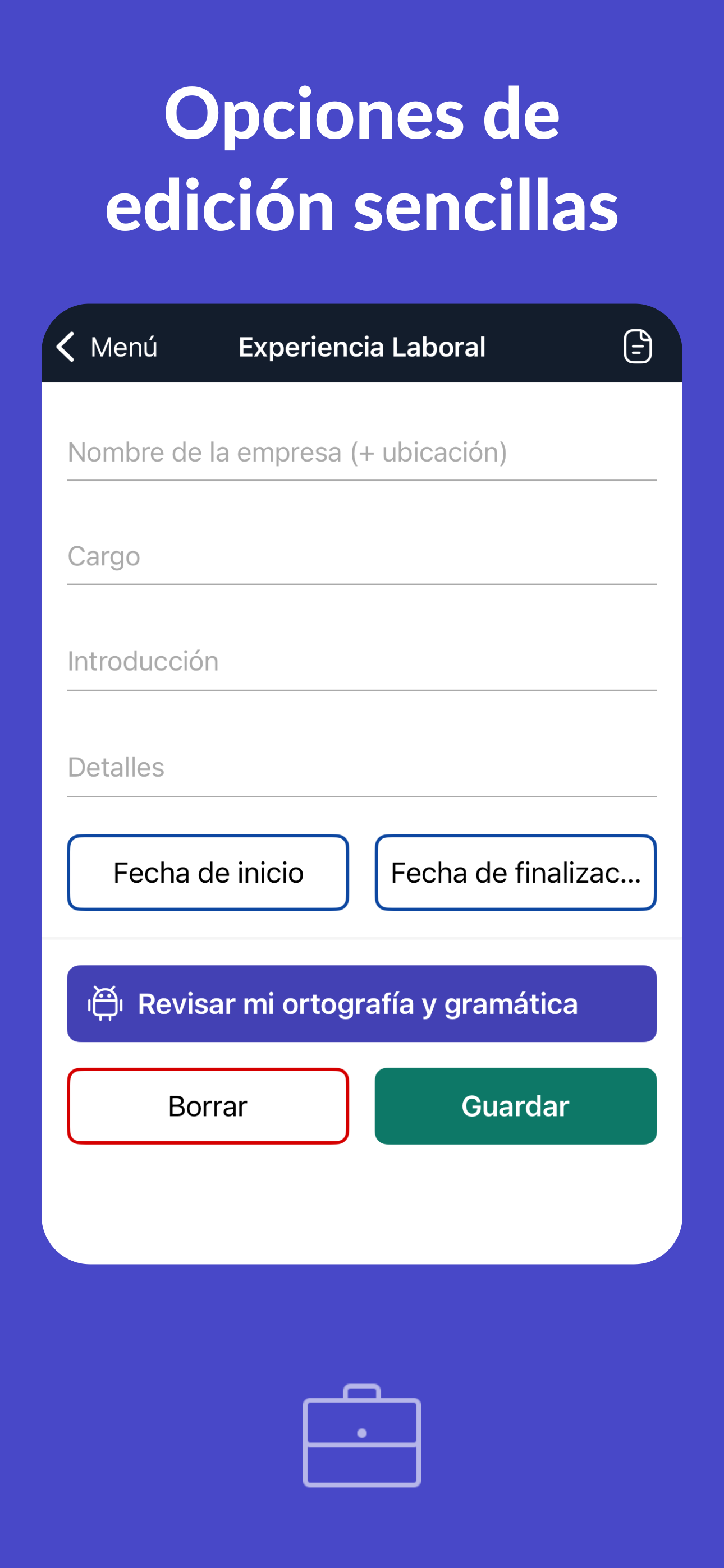 Utiliza nuestro asistente de IA para redactar los apartados de tu CV siguiendo las prácticas recomendadas. Incluye revisión de ortografía y gramática.
