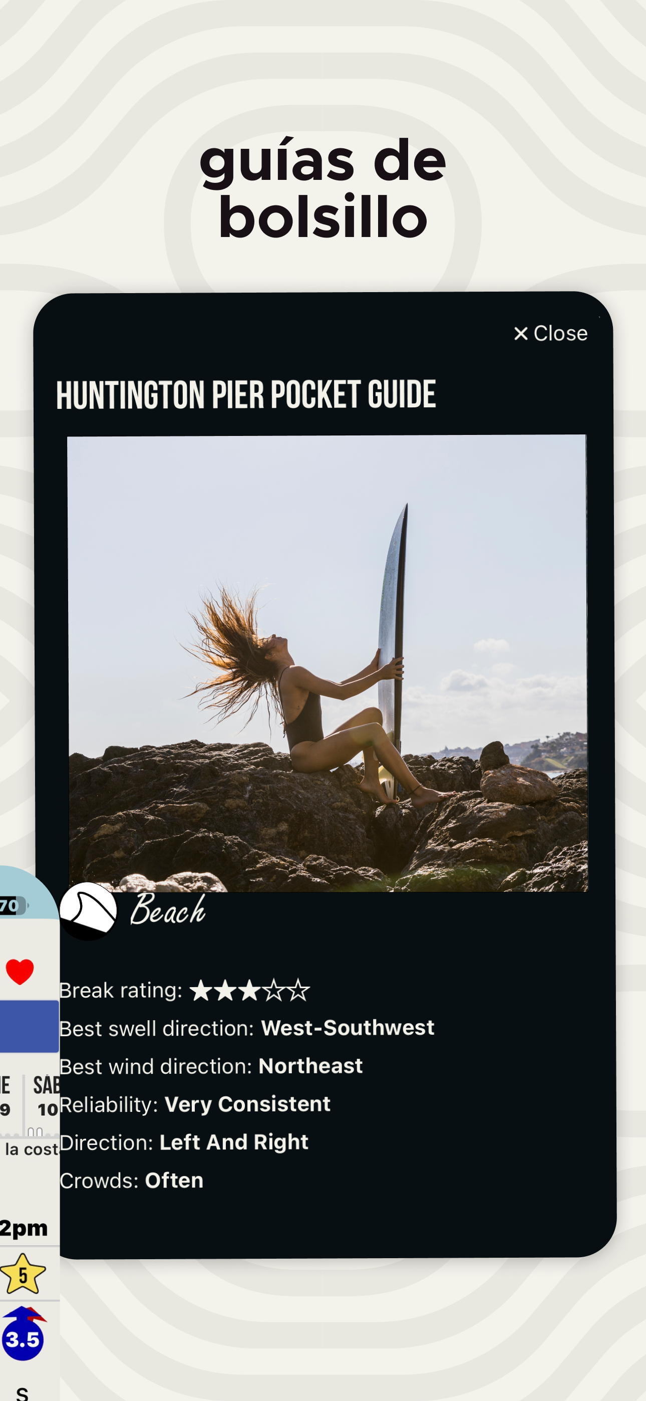 ⁃ Pronósticos detallados de surf