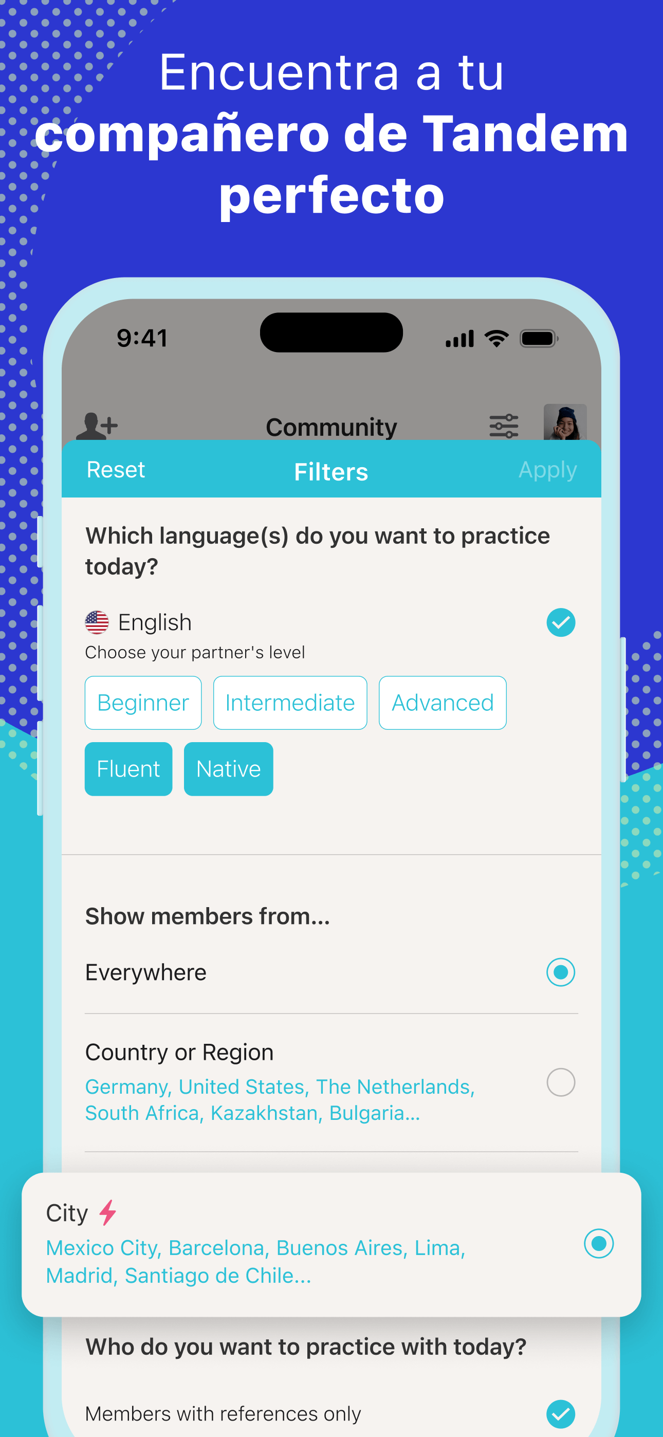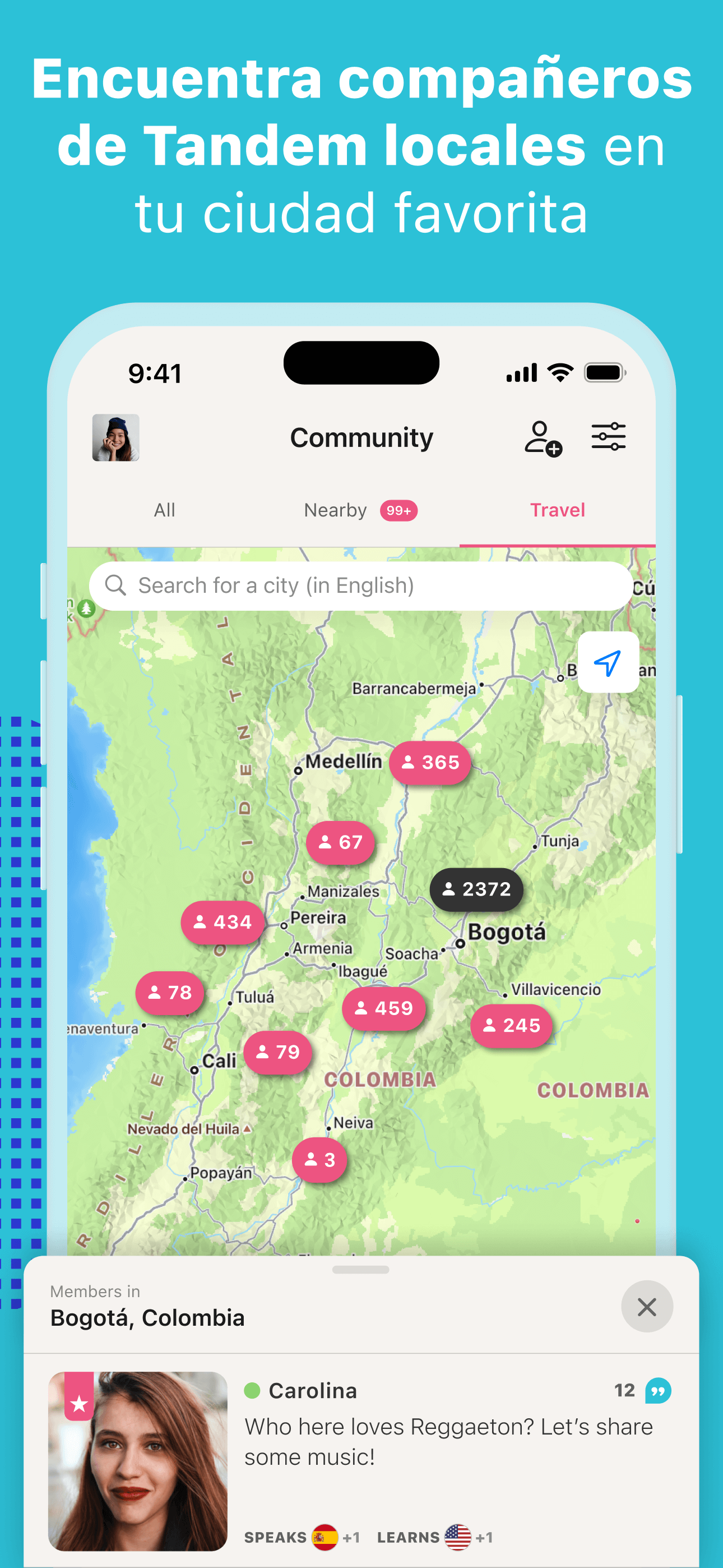 Aprende, conecta y comparte con chats 1 a 1 o prueba las Fiestas, nuestro espacio de audio de aprendizaje en grupo. Hay millones de miembros de Tandem con diversos intereses, así que encuentra a tu gente y empieza a hablar su idioma hoy mismo.