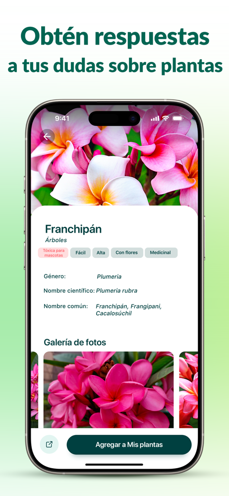 Prueba tomar una foto de un árbol o un hongo en el parque y reconócelo con nuestra app. No podrás parar. Con nuestra extensa base de datos, puedes identificar cualquier planta, hongo, mineral o insecto que te encuentres e impresionar a tus amigos en el próximo paseo en el parque. También puedes buscar una planta por su nombre o establecer filtros y descubrir las mascotas verdes que vayan mejor contigo.