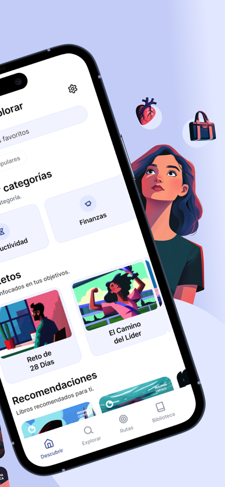 - Biblioteca variada: productividad, hábitos, comunicación, finanzas, salud y desarrollo personal