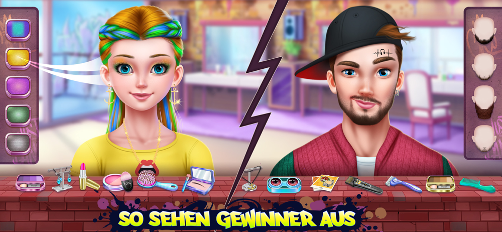 > Fall beim Wettbewerb mit deinem coolen neuen Look auf – lass deine Haare stylen (pinke Haare? Kein Problem!) und dich schminken (schon mal neonfarbene Augen gehabt?!).