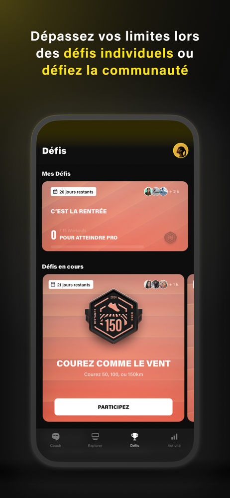 Un peu de compétition saine est un excellent moyen de tester vos limites et de garder la motivation. Participez aux défis dans une large panoplie d’activités et de sports, et accumulez des badges à afficher.