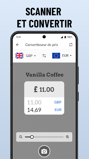 Convertisseur de prix. Convertissez instantanément les prix en utilisant votre appareil photo.