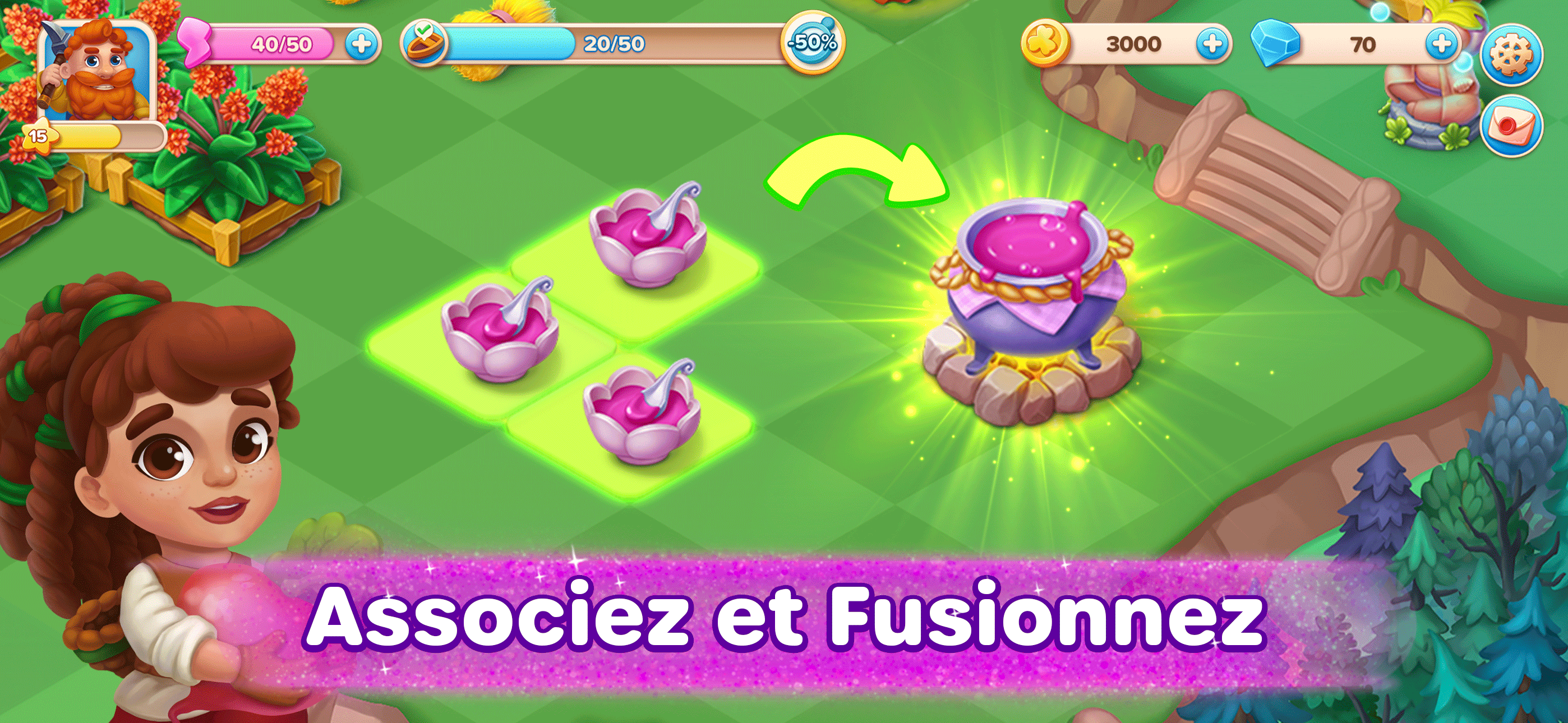 J'aime beaucoup ce jeu. Les personnages et leur environnement, les objets à fusionner sont mignons. Au fur et à mesure du jeu, l'on reçoit plein de cadeaux qui nous font avancer. Pas d'obligation de faire achats pour jouer, c'est sympa. Et encore plus sympa, pas de pub 😃. Je le recommande. Merci en tout cas pour ce jeu.