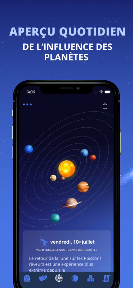 Un horoscope personnel précis, une compatibilité zodiacale, un tableau des biorythmes, une prédiction numérologique complète, un rapport des phases de lune et même un aperçu planétaire quotidien - TOUT dans UNE SEULE application ! Pour garantir l’exactitude des rapports, nous les générons en fonction de votre date de naissance et de votre nom complet. L’astrologie est un moyen très puissant de découverte de soi, de compréhension des autres et du monde qui nous entoure !
