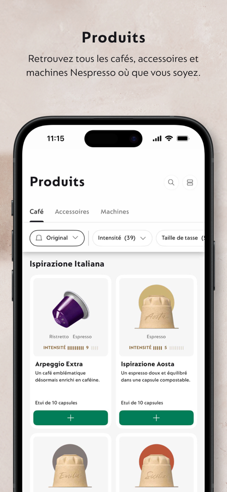 Découvrez la nouvelle expérience d’achat Nespresso sur application : vos cafés préférés et les dernières créations café à portée de main, où que vous soyez.