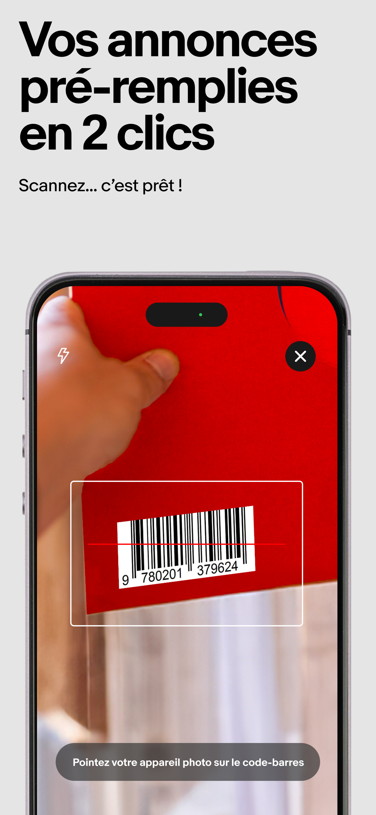 Ajoutez une annonce en seulement 2 clics en scannant le code-barres de votre objet. Gérez toutes vos annonces et vos commandes facilement depuis votre téléphone.