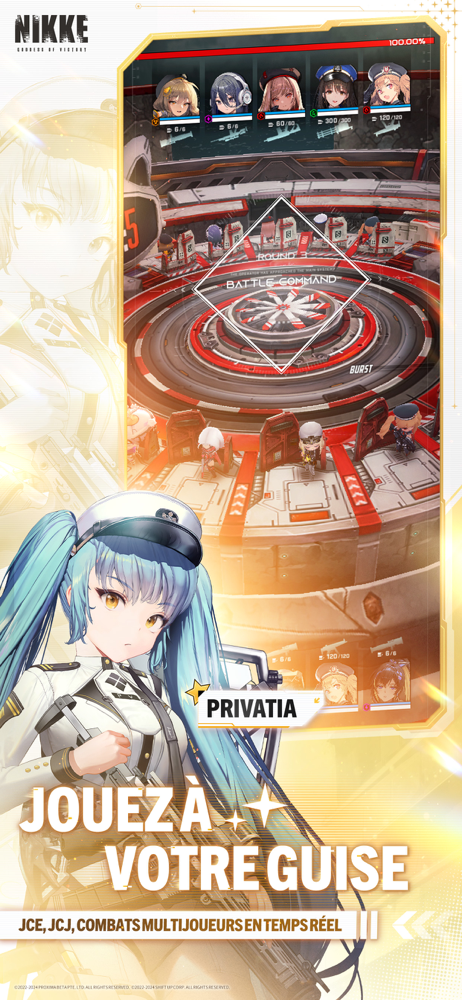 GODDESS OF VICTORY: NIKKE est un jeu de tir RPG de science-fiction immersif, dans lequel vous recrutez et commandez divers personnages féminins pour former une glorieuse équipe, spécialisée dans le maniement d’armes à feu et d’armement futuriste. Rassemblez et dirigez des humanoïdes aux techniques de combat uniques pour créer votre équipe ultime ! Vivez une expérience de jeu de tir de niveau supérieur avec des commandes simples mais intuitives tout en profitant d’effets de combat dynamiques.