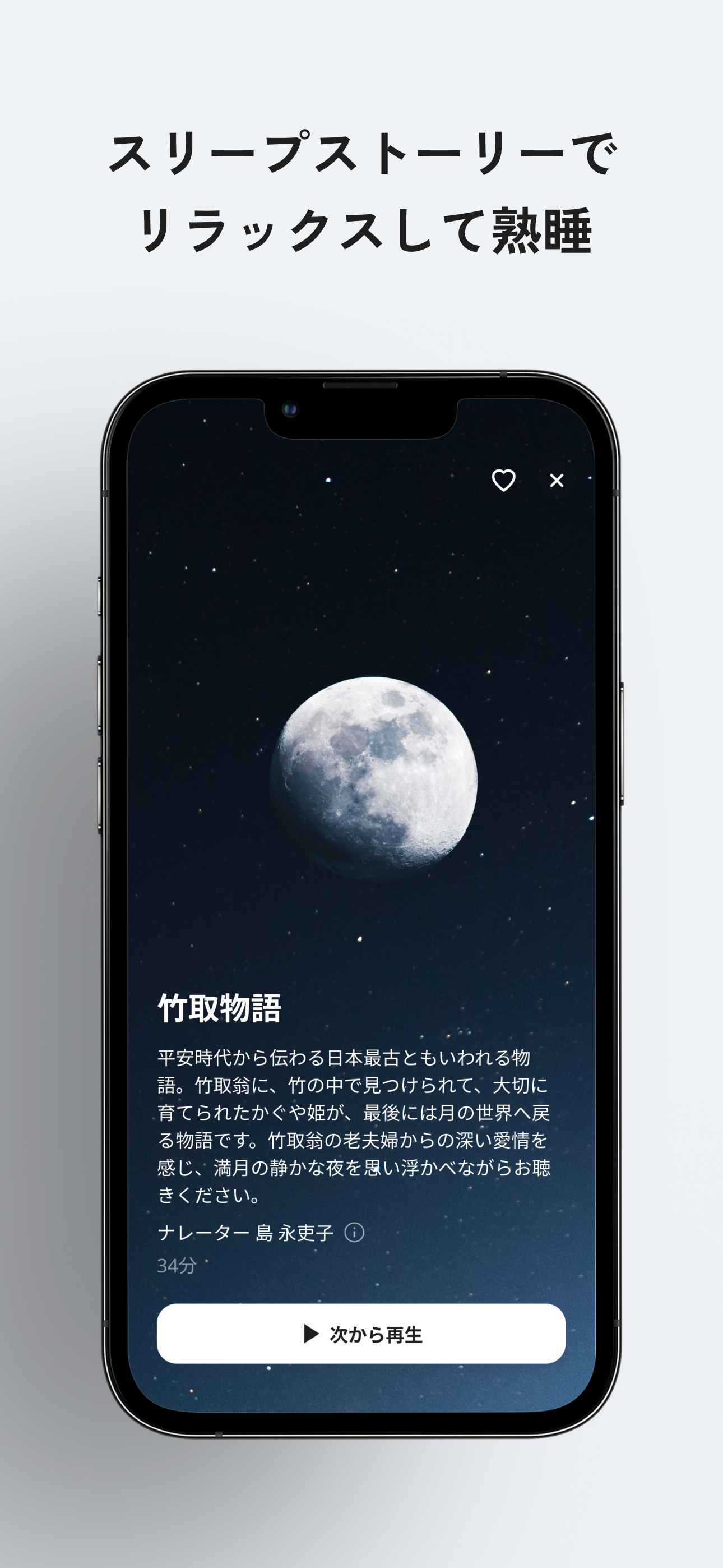 心の余白をもつためには、日中に整えるだけでなく、質の良い睡眠をとって、心(脳)を休ませることが非常に重要です。良い眠りをサポートするためのコンテンツも多数搭載しております。元NHKキャスターの島永吏子氏がナレーションの物語の読み聞かせや、夜中に聞くと落ち着く音楽など、多数リラックスしながら眠りにつくためのコンテンツがあります。ベッドや布団で寝ながら聴いて気持ちよく眠ることができるようになっています。