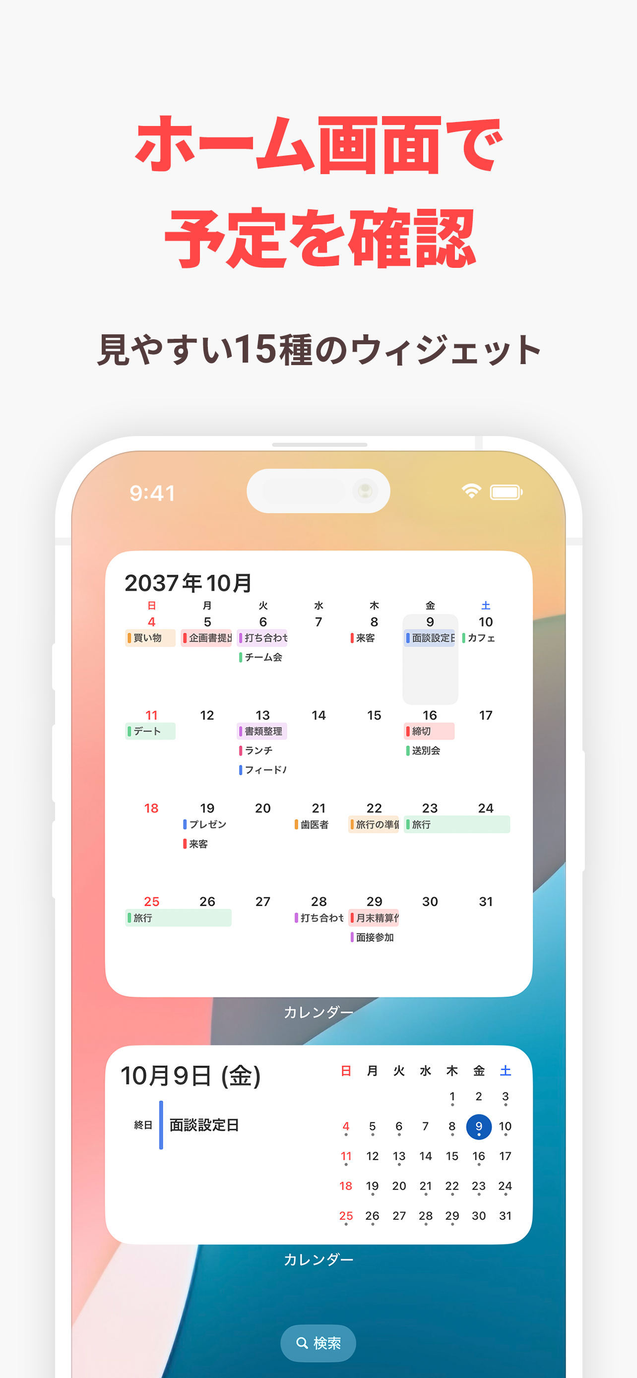 ・15種類のホーム画面ウィジェット
