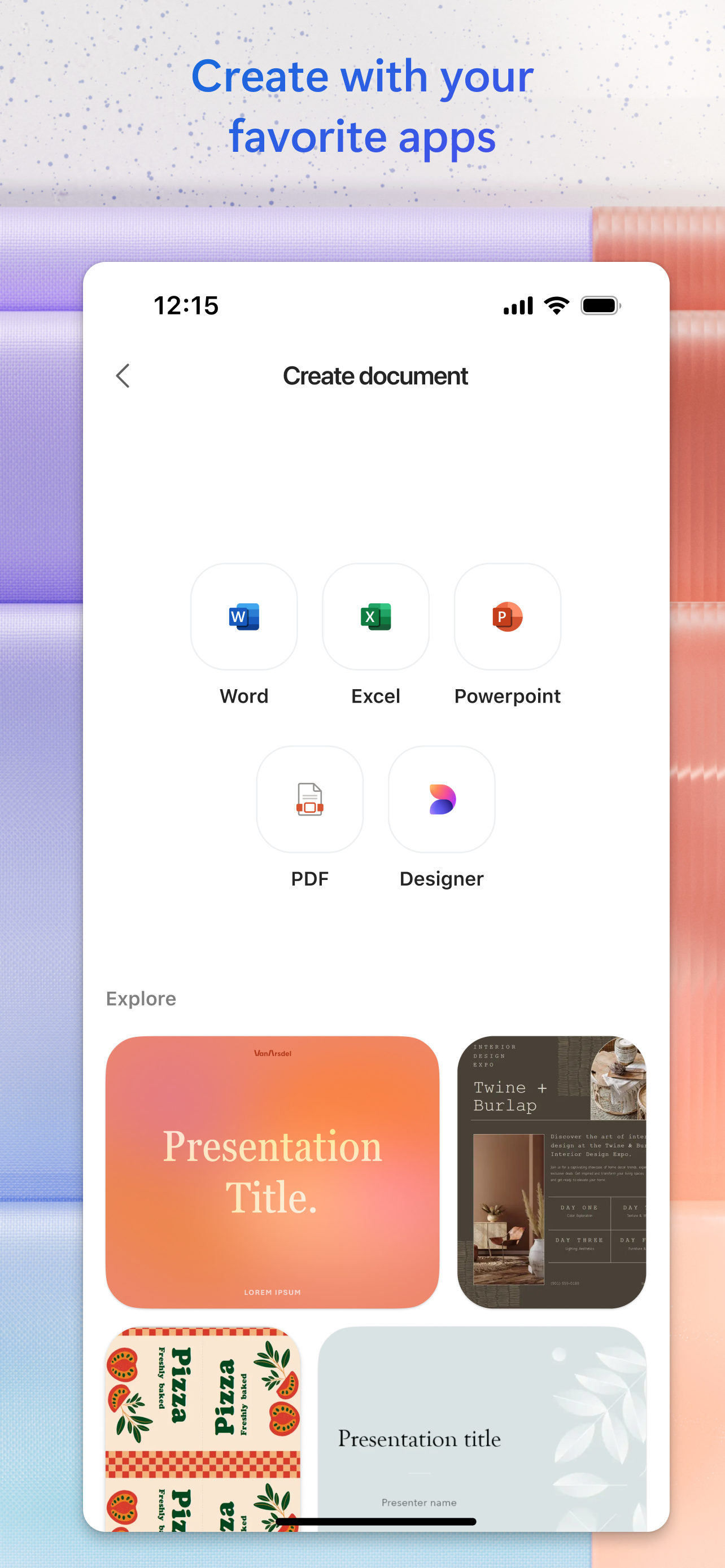 Word、Excel、PowerPoint、Copilot がすべて 1 つのアプリに集約されています。