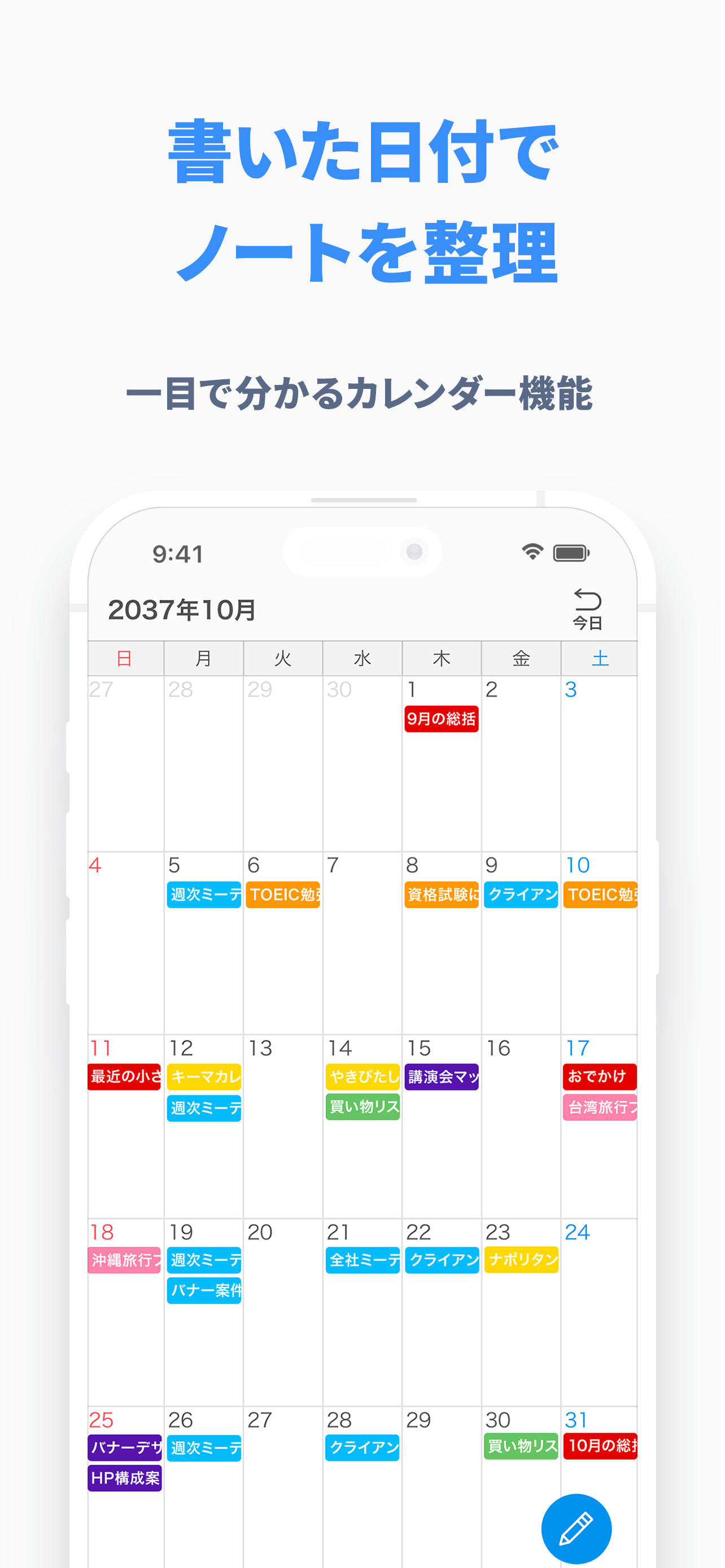 フォルダを作ってジャンルごとに管理してもよいですし、他のアプリにはないカレンダー機能や写真アルバム機能で便利にノート・メモを探せるのはこのアプリだけですので、あとで使っていてよかったという瞬間がきっとあるはずです!
