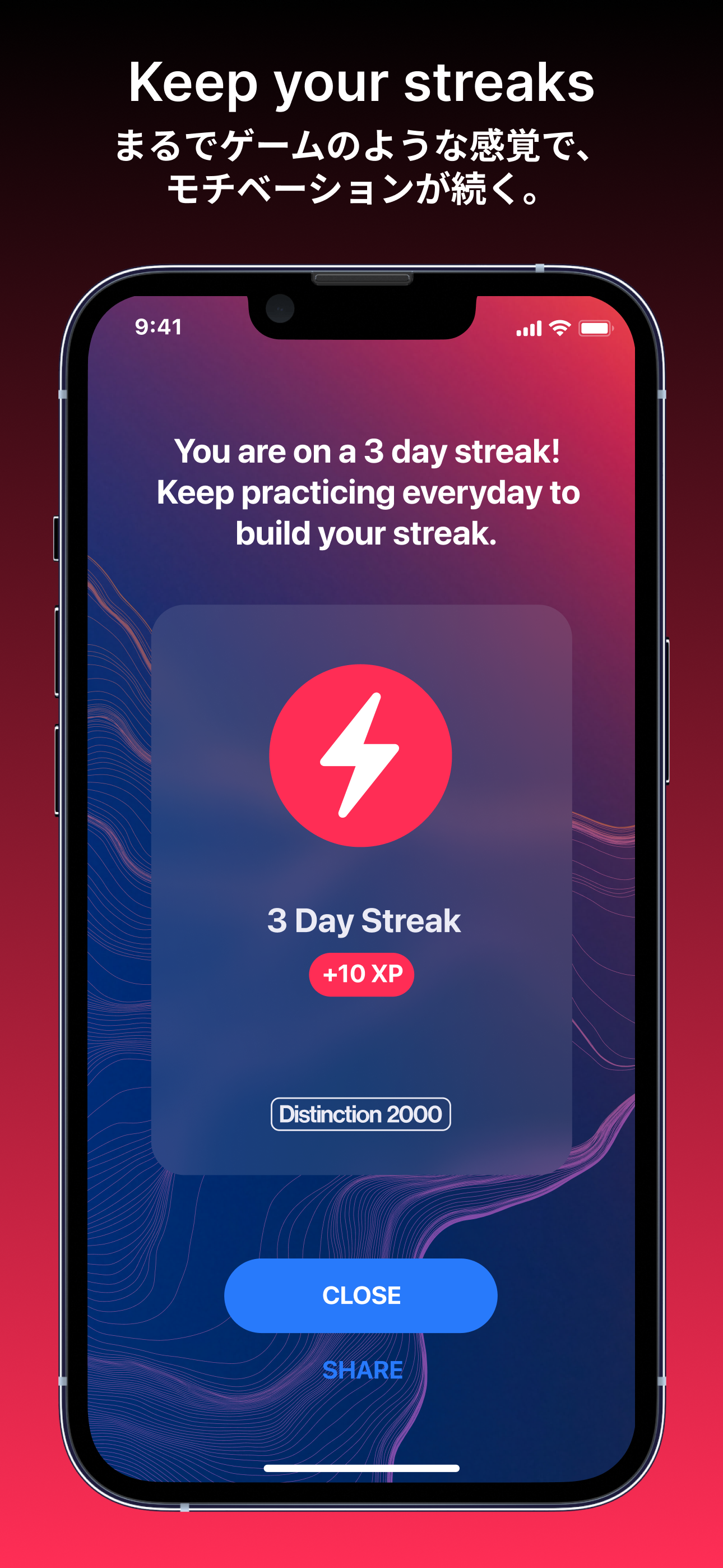 Distinction 2000の世界へようこそ。Distinction 2000は、英語学習の基盤となる、中級レベルの基本単語を収録した英単語帳です。従来の中級レベルの英単語帳は非常にかたく、非実用的な例文で溢れているものばかりでしたが、本単語帳ではネイティブが自然に使う実用的な例文を採用。基礎単語学習から、「使える英語」を構築できるように設計しました。忘却曲線を考慮したスタディモードを使えば、たくさんの英単語・表現もあっという間に覚えることができます。