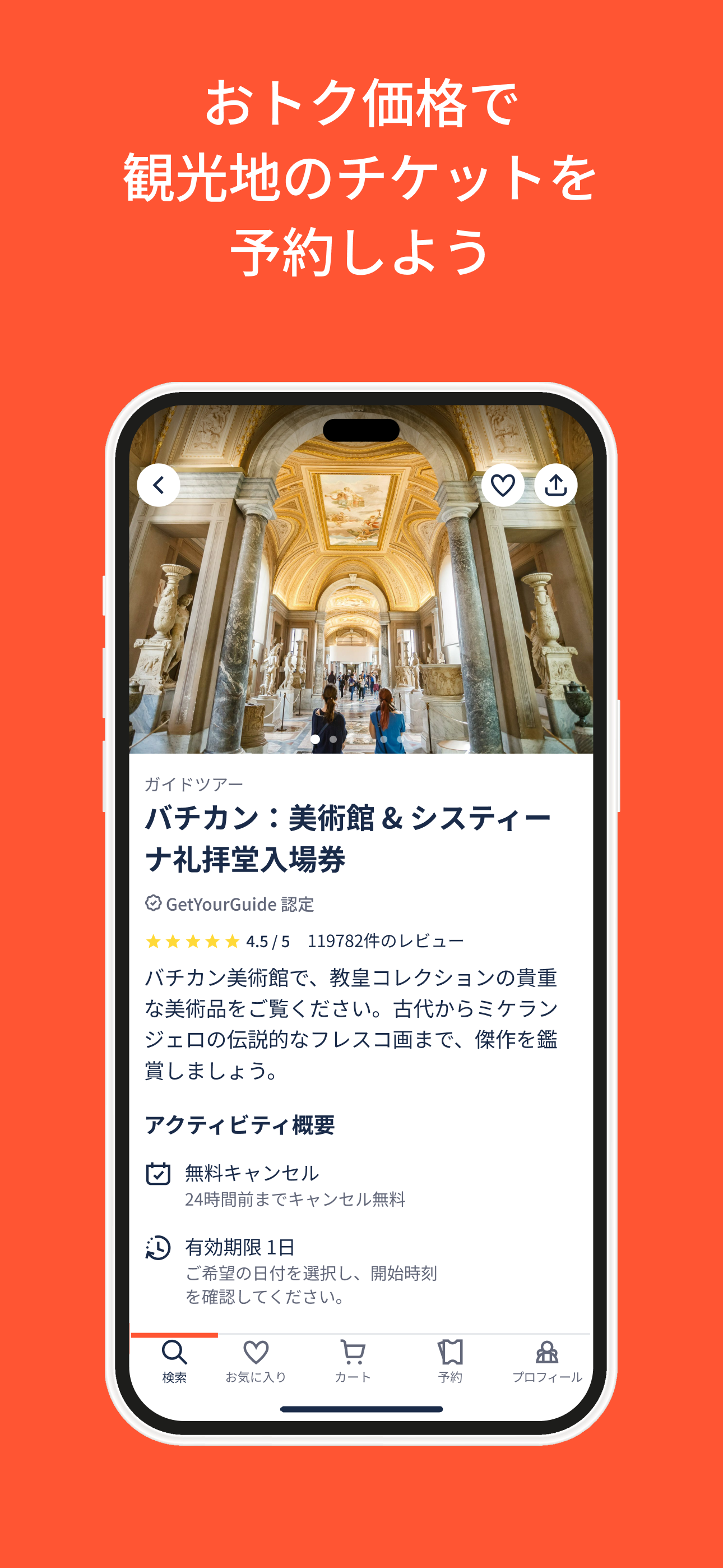 世界中の旅先でとても役立つトラベル アプリをダウンロードして、一番人気のツアーやチケットをチェックしましょう。 ご希望を教えてください。滞在地でベストなガイド ツアー、行列スキップ チケット、外せないアトラクションを提案します。