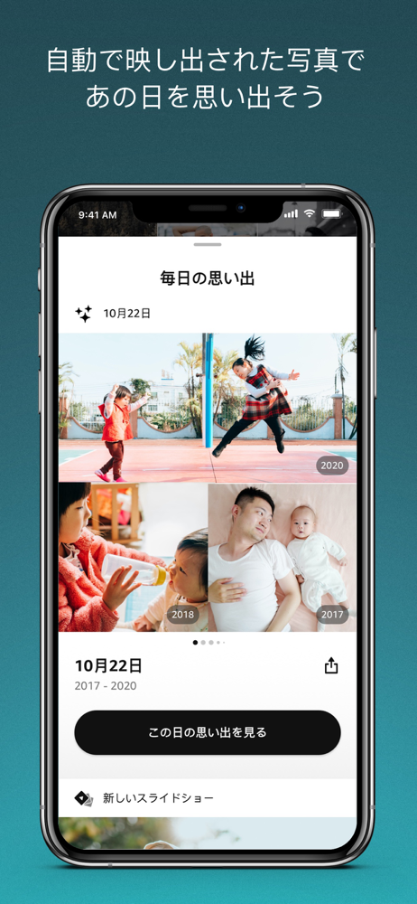 Amazon Photosでは、スマートフォンやコンピューターなどのデバイスからすべての写真とビデオをバックアップ、整理、共有できます。ほぼすべてのデバイスにあるすべての写真にアクセスし、家族や友人と共有できます。プライムで容量無制限の写真保存 (アメリカ、イギリス、カナダ、ドイツ、フランス、イタリア、スペインおよび日本でのみ利用できます)。