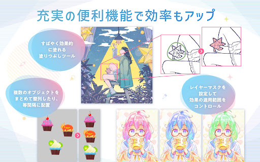 SNSでもたびたび話題になるオリジナルな便利機能がたくさんあるから、他のお絵描きアプリと一緒に使っても、もちろんCLIP STUDIO PAINT(クリスタ)だけでも、もっと楽しく、快適に描ける!