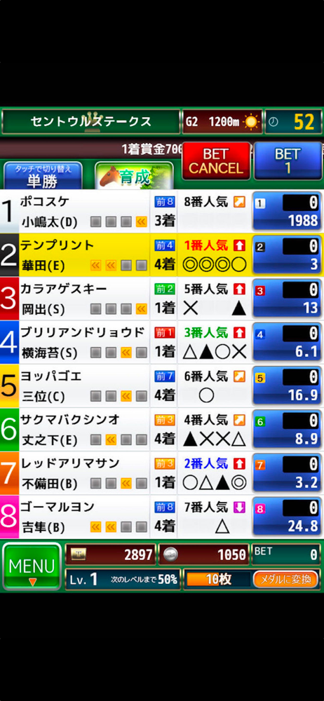 全国大会も毎日開催で目指せ日本一!競馬メダルゲーム+育成シミュレーションの決定版!