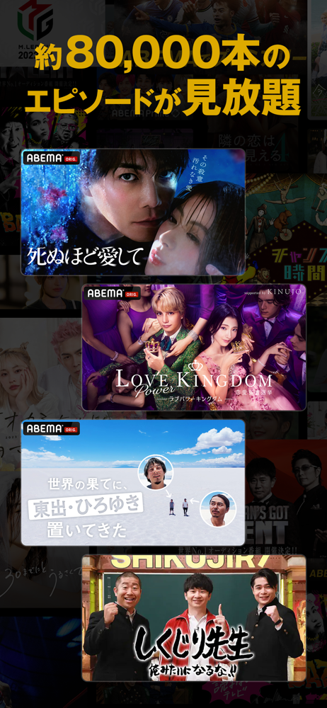 ABEMAオリジナルのドラマや恋愛リアリティーショーなど、ABEMAでしかみられないテレビ番組を制作、放送しています。