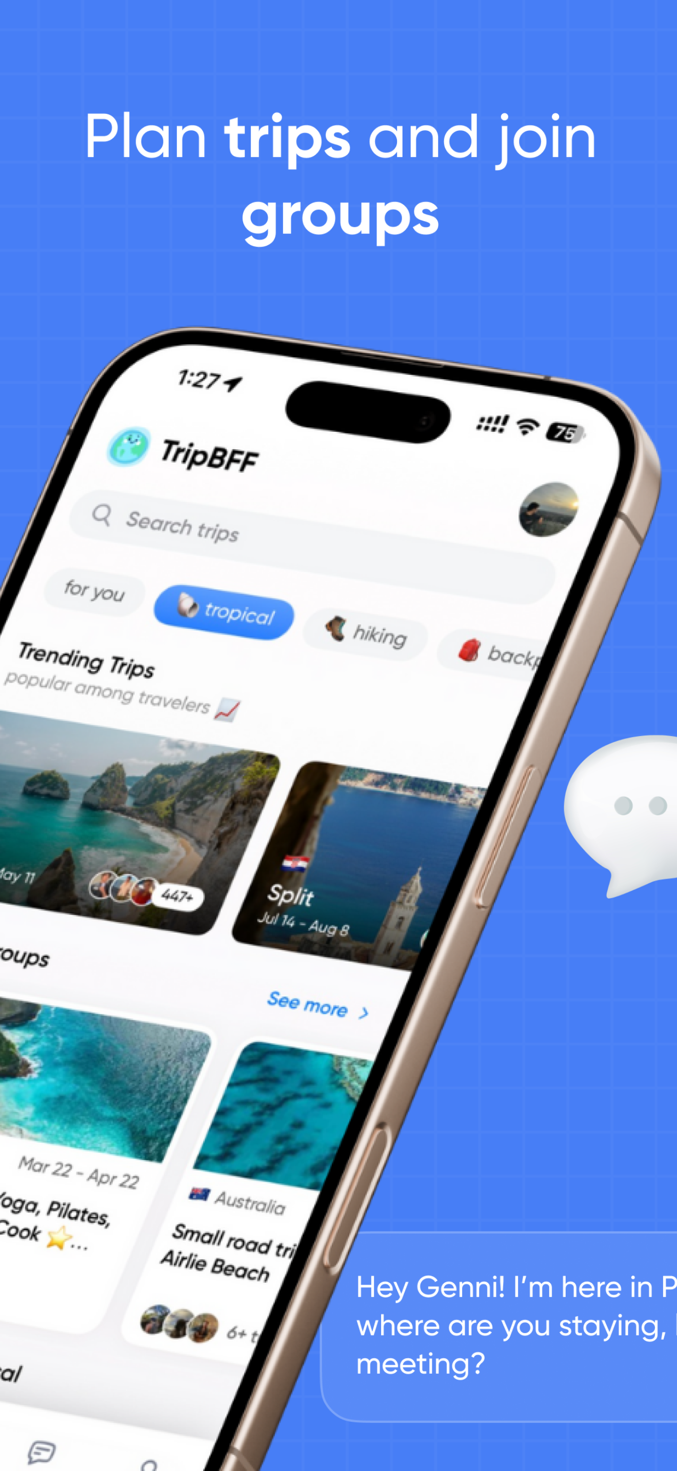 But that’s not all—TripBFF is filled with travel tips and insights. With TripBFF you can do Travel Wrapped. Browse through lots of user-generated content, including travel guides, packing hacks, and insider recommendations. From hidden gems off the beaten path to must-try local cuisine, TripBFF’s community is here to help you make the most of your adventures. No more need for Trip Advisor no more need for hostelworld .