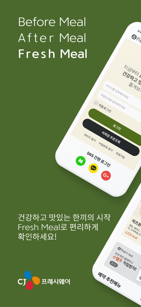 건강하고 맛있는 한끼의 시작 Freshmeal로 편리하게 시작하세요!