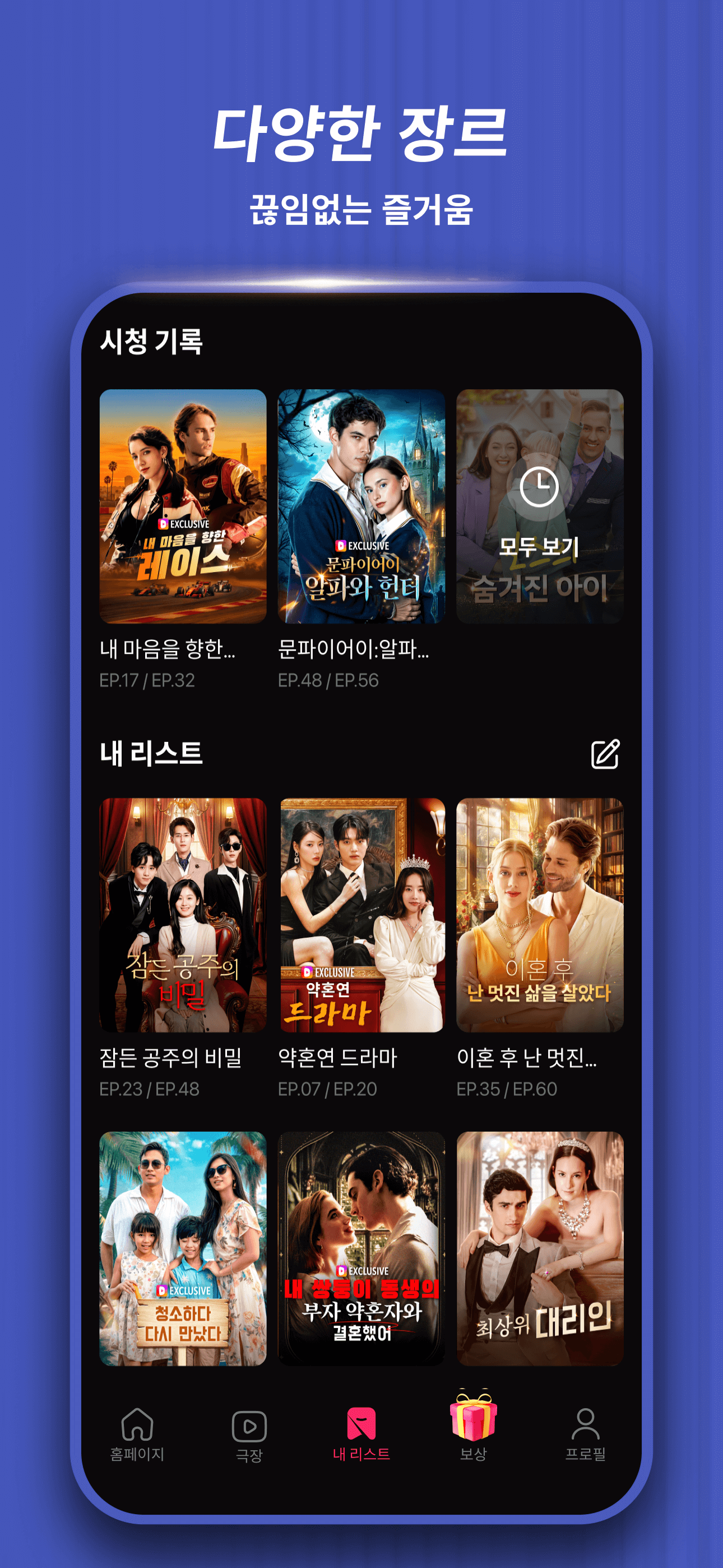 몰입감 있는 엔터테인먼트 경험을 제공합니다. 정교한 알고리즘을 통해 맞춤형 드라마 콘텐츠를 제공하여 좋아하는 드라마를 빠르게 찾을 수 있습니다.