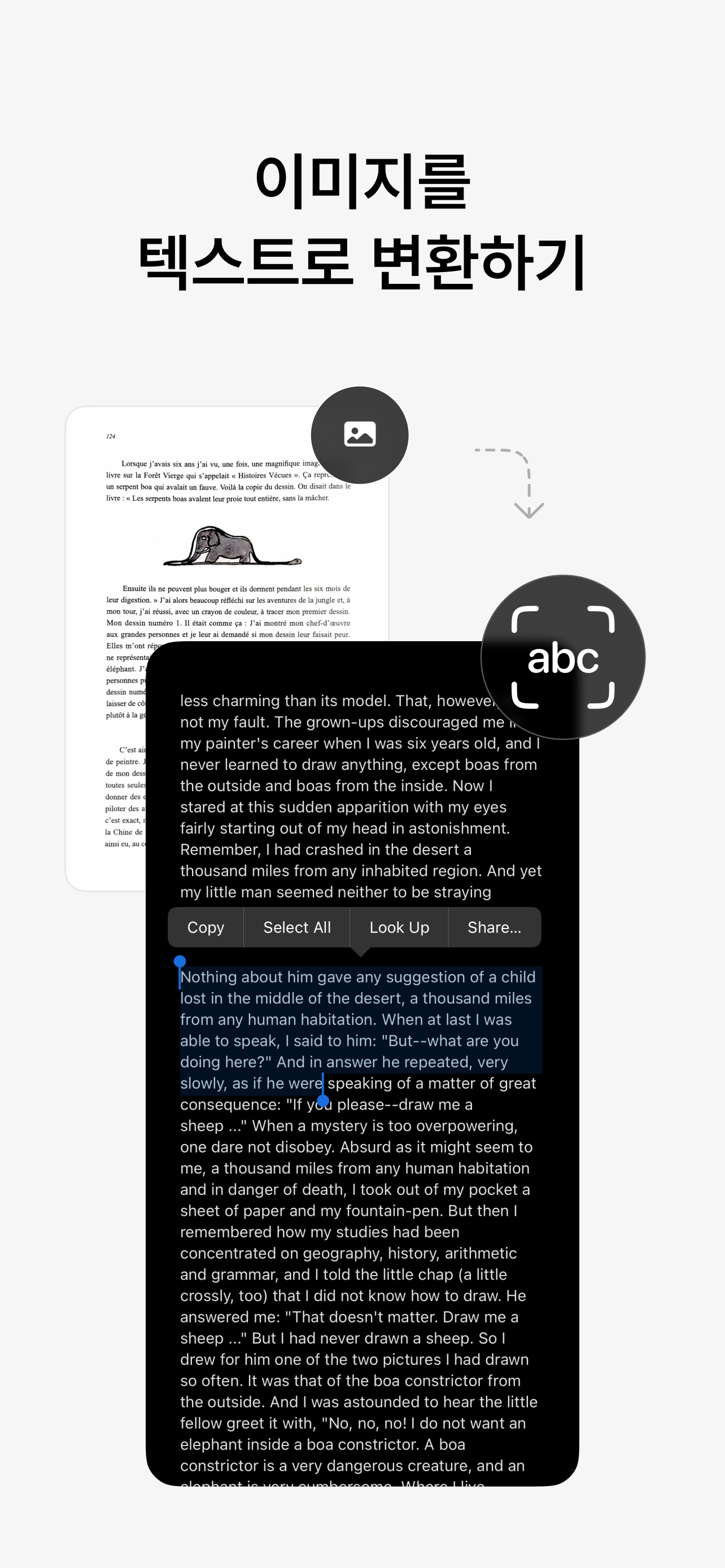 문자 인식 기능을 통해 스캔한 이미지를 무료로 텍스트 변환해줍니다. 변환한 텍스트를 복사하여 친구나 동료에게 간편하게 공유할 수 있습니다.