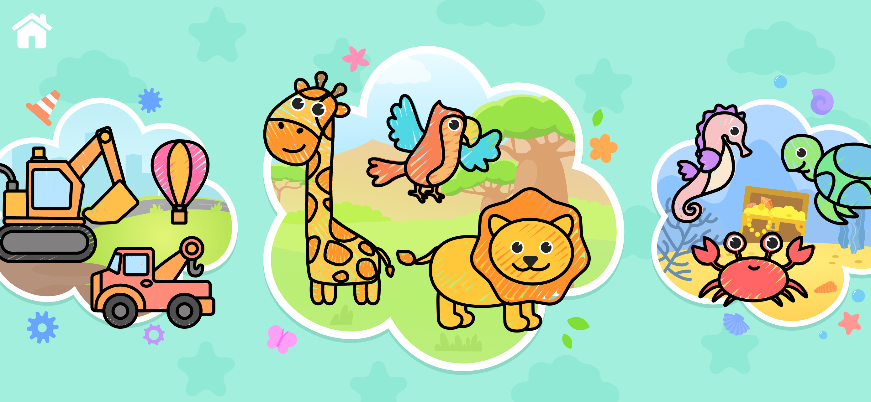 Colorir imagens em nosso aplicativo não requer muito esforço. Se seu filho escrevia com o dedo com tinta sobre o papel antes, agora ele pode simplesmente se mover pela tela sensível ao toque, desenhando padrões interessantes e pintando animais e carros em cores incomuns. Treine habilidades motoras finas, estique os dedos e, o mais importante, as mãos de seus filhos estarão sempre limpas!