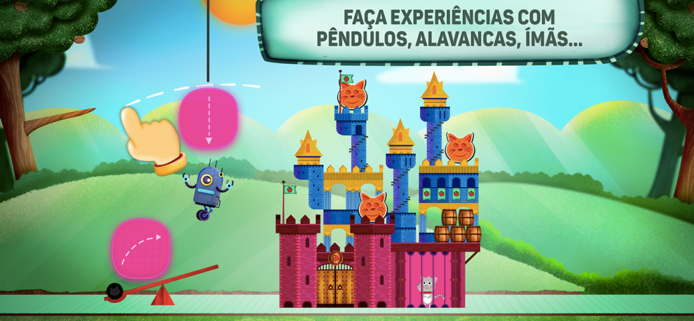 Jogue e aprenda enquanto ganha petiscos para alimentar o gato. Desenvolva o pensamento científico, a lógica e a curiosidade. Divirta-se com seus novos amigos, o gato e o robô.