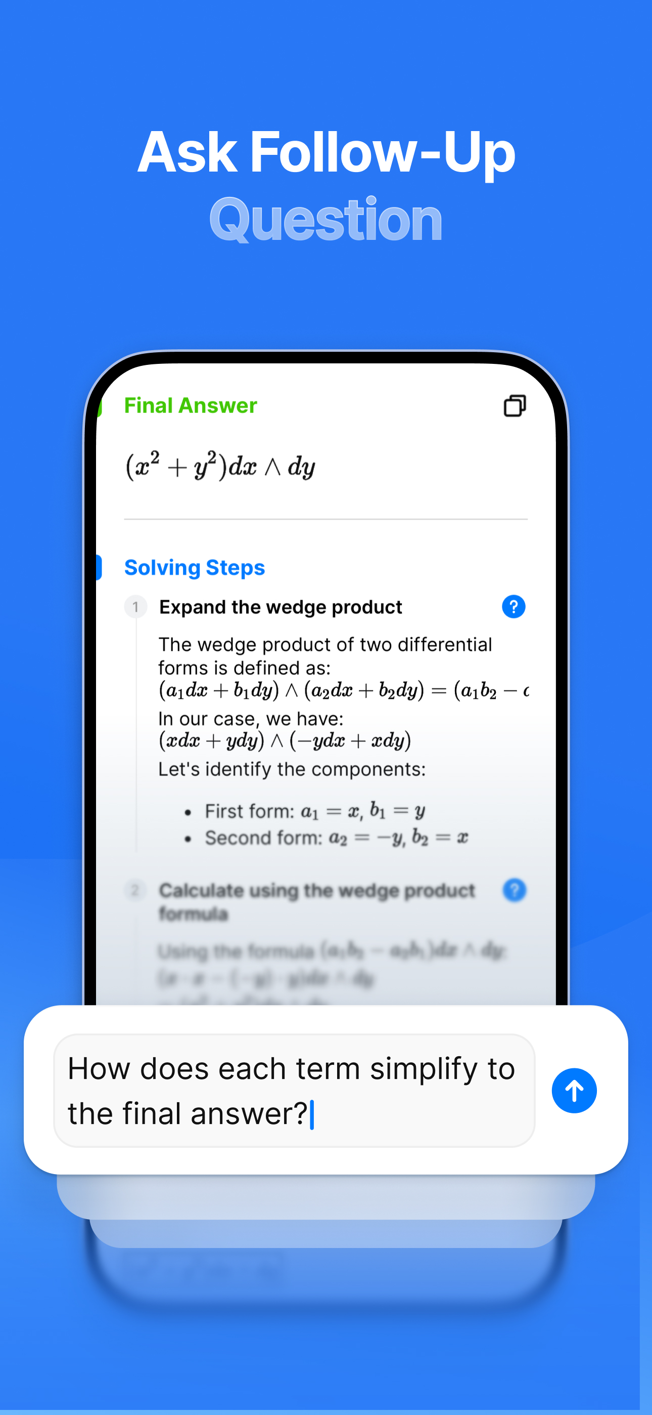 No Solvely, acreditamos em promover uma compreensão profunda dos conceitos matemáticos. É por isso que vamos além de simples soluções. O Solvely fornece explicações passo a passo que o guiam em cada problema, permitindo que você entenda os princípios subjacentes. Quando você encontra uma etapa desafiadora, o Solvely oferece explicações detalhadas e interpretações, transformando cada solução em uma valiosa oportunidade de aprendizado. Com o Solvely, a matemática se torna uma jornada de descoberta e crescimento.