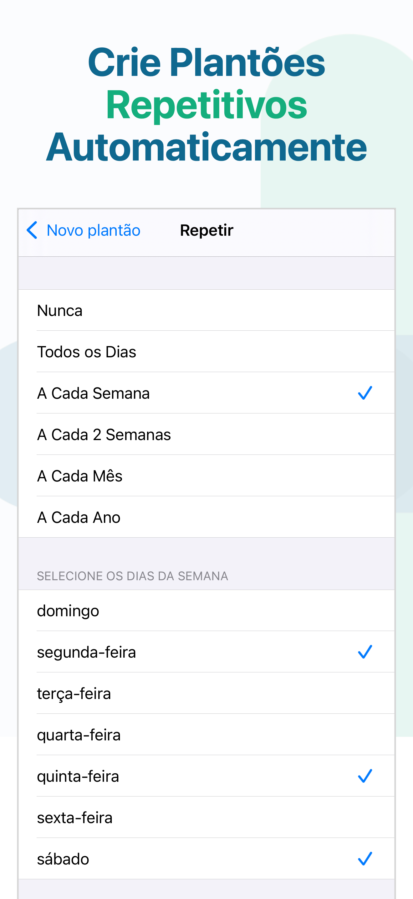 • Criação de plantões recorrentes (com repetição automática)