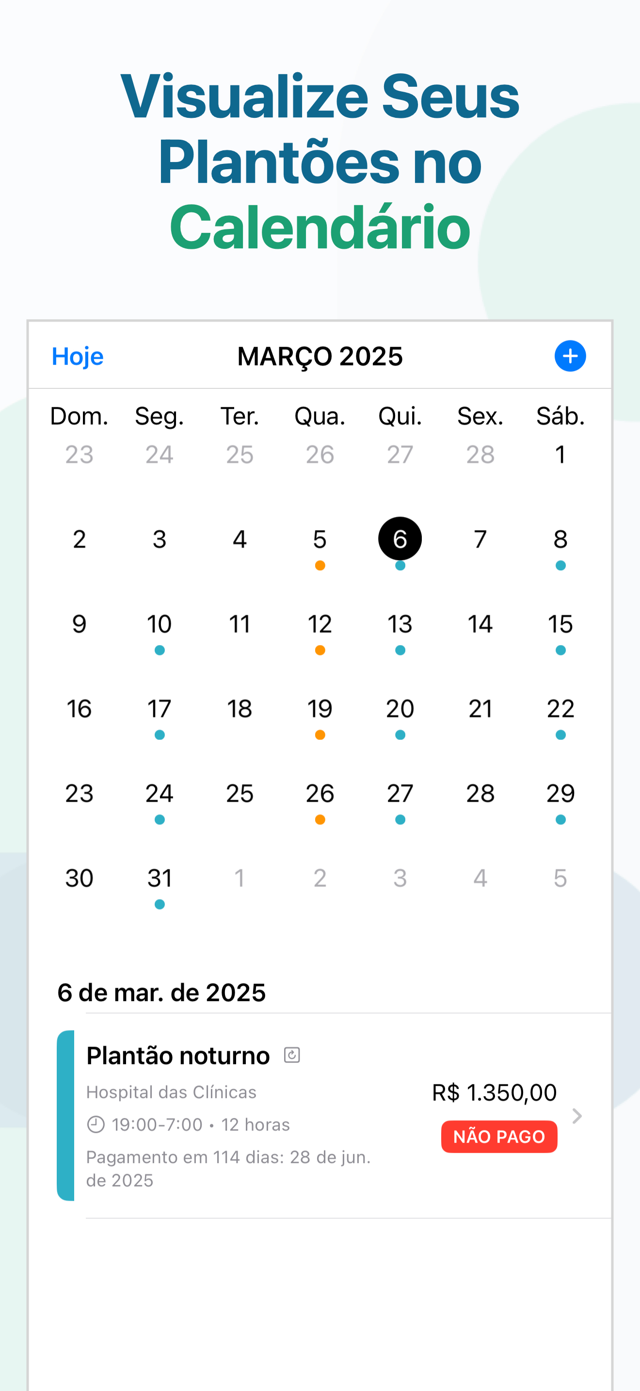 • Várias opções de cores para organizar seus plantões